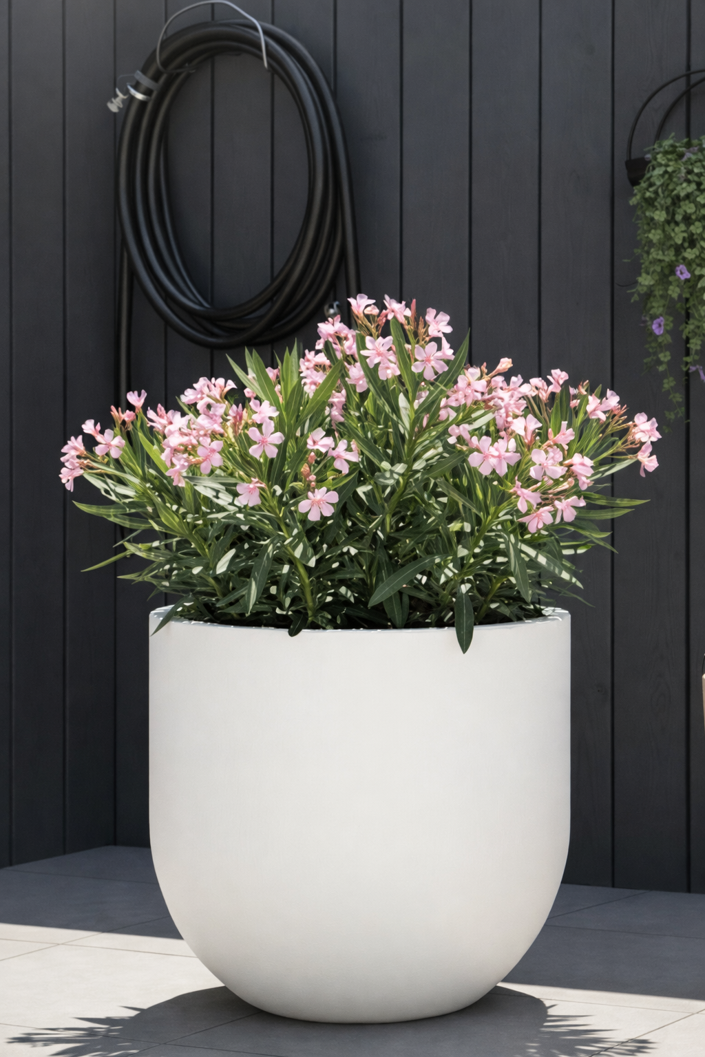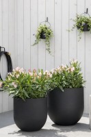 Nowoczesna Donica Primo charakteryzuje się dużą pojemnością, dzięki czemu możesz posadzić w niej rośliny lub drzewka z większą bryłą korzeniową. Okrągła Donica Primo to świetny wybór zarówno do wnętrz, jak i na taras lub balkon. Polecamy zastosowanie osobno lub w zestawie przed drzwiami wejściowymi.