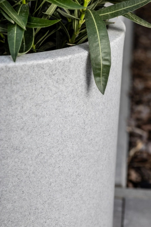 Primo 70 to donica, która redefiniuje pojęcie ogrodowej elegancji. Jej solidna, okrągła sylwetka o średnicy i wysokości 70 cm staje się nie tylko bazą kompozycji roślinnych, lecz także świadomym elementem architektury przestrzeni. W wykończeniu stylizowanym na naturalny granit, wprowadza do otoczenia szlachetność inspirowaną strukturą kamienia – surową, ale wyjątkowo estetyczną.
