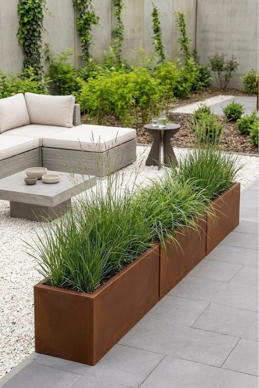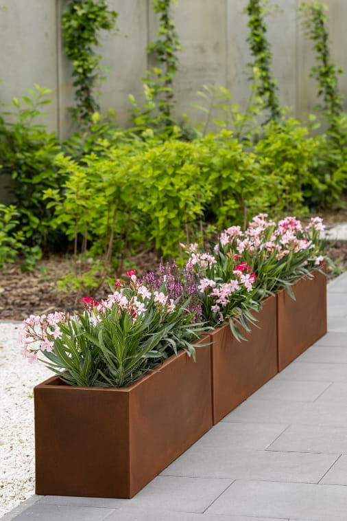 Komplet donic ogrodowych 3 szt. prostokątnych 100 cm w efekcie corten | Long Maxi pełne | Monumo