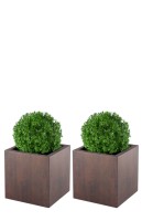 Komplet kwadratowych donic na taras 50 × 50 cm – efekt corten | Pixel Pot z półką | Monumo