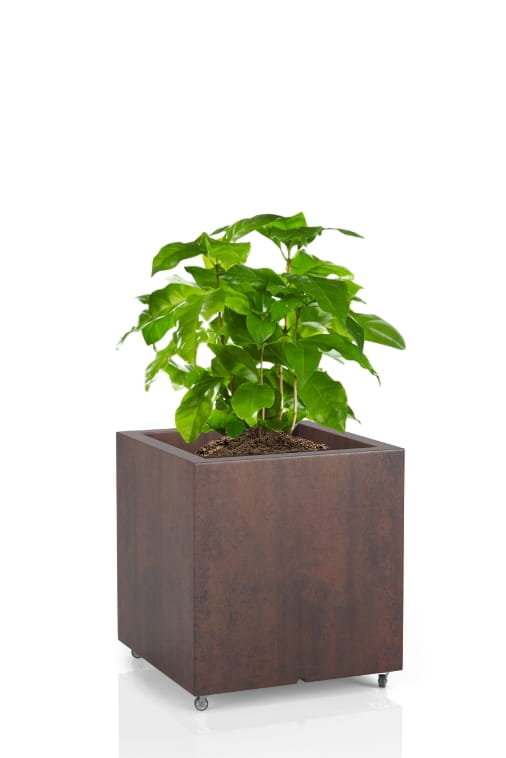 Kwadratowa donica ogrodowa na kółkach 40 × 40 cm – efekt corten | Pixel Pot z półką | Monumo