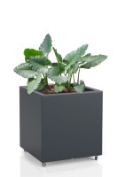 Kwadratowa donica ogrodowa na kółkach 50 × 50 cm antracytowa | Pixel Pot z półką | Monumo