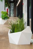 Nasze wnętrze lub taras mogą liczyć na nieco ekstrawagancji po umieszczeniu tam roślin w donicy Vesari. Jej aranżacja oraz kształt z całą pewnością są unikatowe, dlatego znakomicie pasuje do wielu miejsc. Dzięki szerokiej gamie kolorystycznej możemy ją umieścić zarówno w domu, jak i w miejscach publicznych, takich jak galerie handlowe, biura czy tarasy przed restauracjami. Oprócz niebanalnego kształtu, donica Vesari wyróżnia się wytrzymałością. Z tego powodu można ją śmiało wykorzystać do aranżacji ogrodu lub tarasu. Wykonana jest z polietylenu, który czyni donicę odporną na trudne warunki atmosferyczne. Donica Vesari jak większość w naszej ofercie, ma dwie wersje: z wewnętrzną półką - chroniącą korzenie Twojej rośliny przed przegrzaniem, lub przemarznięciem zależnie od pory roku, oraz wersja pełna pojemność – przydatna, gdy korzenie wymagają więcej miejsca. Opcjonalne odprowadzenie wody jest dostępne w obu wersjach.
