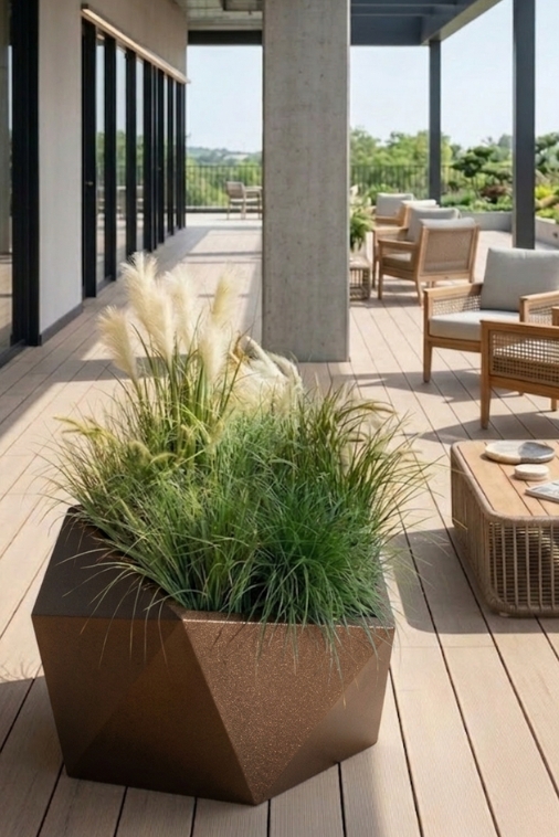 W domu w donicach Vesari warto zasadzić dużego fikusa lub jukę, natomiast w ogrodzie te donice sprawdzą się na sosny wejmutki, bukszpany czy begonie.