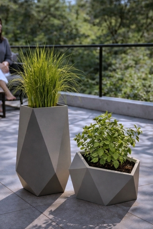 W domu w donicach Vesari warto zasadzić dużego fikusa lub jukę, natomiast w ogrodzie te donice sprawdzą się na sosny wejmutki, bukszpany czy begonie.