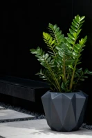 Te ekskluzywne donice do salonu i ogrodu mogą eksponować różne rośliny. Zamiokulkas, Palma, Filodendron, Kalatea- to rośliny, które w harmonijny sposób współgrają z donicą Plaro.
