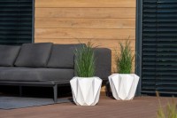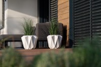 Donica Plaro fenomenalnie prezentuje się w zestawieniu z bliźniaczą donicą w kontrastującym kolorze. Dzięki takiej aranżacji ujawnia swoje delikatne piękno.Materiał z jakiego wykonany jest produkt to wysokiej jakości polietylen, który zapewnia donicom odporność na trudne warunki atmosferyczne takie jak: zmiany temperatur w granicach od +60 po -30 °C, ulewne deszcze oraz promieniowanie UV.
