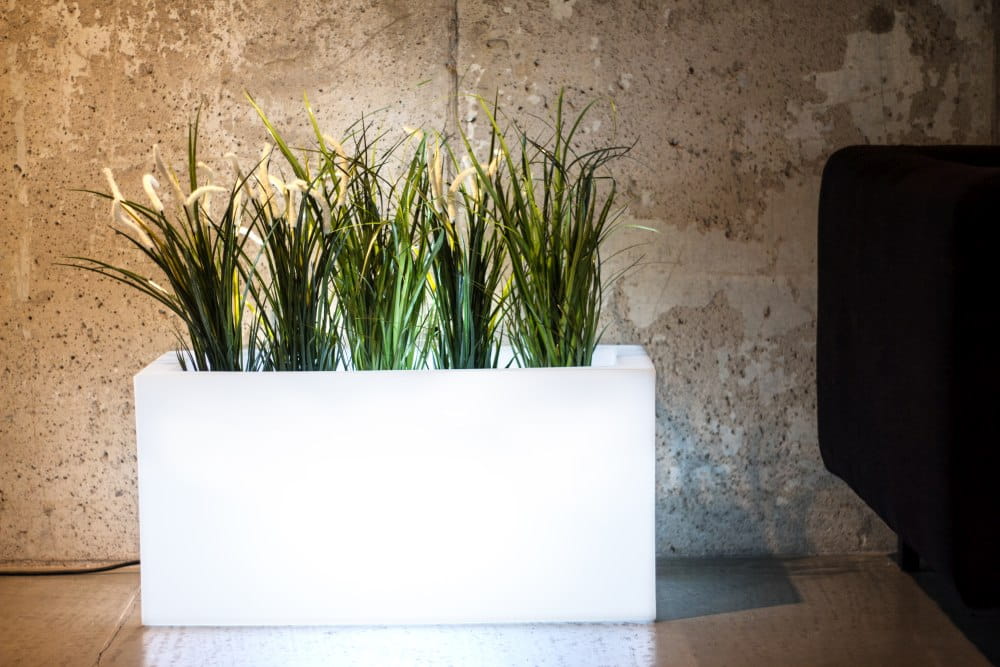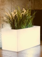 Donica Lungo podświetlana żarówką LED, subtelnym światłem stworzy przyjemny nastrój w domu lub na tarasie. W galeriach handlowych lub w ogródkach restauracyjnych mogą tworzyć strefy, dając niesamowity efekt. Oferujemy barwy zimną i ciepłą oraz 16–to kolorową żarówkę RGB z pilotem. Kabel biały i biały z wyłącznikiem tylko do wnętrz a kabel czarny – uniwersalny. Niezależnie gdzie stoi – we dnie elegancka donica, wieczorem i w nocy lampa pięknie podkreślająca urodę rośliny.