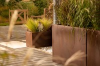 Prostokątna długa donica na taras Lungo z półką 75 cm (75x35x38) w efekcie corten | Monumo