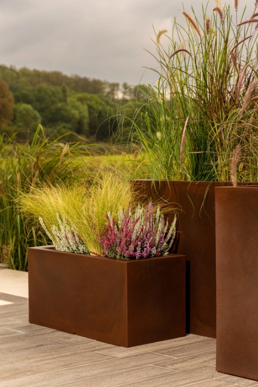 Efekt stalowej rdzy doskonale komponuje się z roślinnością – zarówno na zewnątrz, jak i we wnętrzach. Na tarasie, balkonie, w ogrodzie, a także we wnętrzach takich jak salon, biuro czy hol, donica Lungo stanie się wyjątkowym elementem dekoracyjnym, który doda przestrzeni charakteru i wyrazistości. Jej industrialny wygląd dobrze współgra z roślinami ozdobnymi, drzewkami czy ziołami, które w takim pojemniku zyskają niepowtarzalny kontekst. Z kolei w pomieszczeniach, dzięki surowemu wyglądowi, może stać się centralnym punktem aranżacyjnym, przyciągającym uwagę każdego, kto ją dostrzeże.