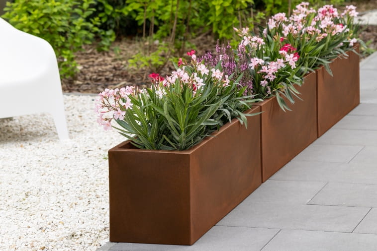 Jeśli jesteś osobą, która uwielbia zieleń i posiada swoją zewnętrzną strefę relaksu, warto pomyśleć o wydzieleniu jej w taki sposób, aby nabrała więcej prywatności. W tym zadaniu idealnie sprawdzi się kilka donic Long Maxi, które wraz z wysokimi roślinami stworzy swego rodzaju, przyjazne środowisku, naturalne ogrodzenie. Jeśli jednak jesteś osobą, która nie lubi tworzyć barier, pojedyncze sztuki równie dobrze udekorują wejście przed domem, czy też wolną przestrzeń na tarasie. W naszej ofercie znajdziesz również donicę Long oraz Long Slim.