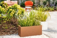 Taras to przestrzeń, która pełni funkcję wypoczynkową, a zarazem jest wizytówką naszego domu. Donica tarasowa Long Slim to element, który świetnie sprawdzi się w takich aranżacjach. Jej elegancka, a jednocześnie prosta formy sprawiają, że wkomponuje się zarówno w przestronne tarasy, jak i mniejsze, bardziej kameralne przestrzenie. Dodatkowo, dzięki efektowi stalowej rdzy, donica wprowadza subtelną nutę industrializmu, który nadaje tarasowi oryginalny, nowoczesny wygląd. Doskonale komponuje się z modnymi meblami ogrodowymi, takimi jak metalowe fotele czy drewniane stoły, tworząc spójną i stylową przestrzeń do odpoczynku.