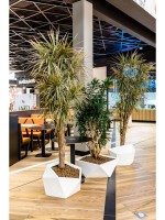 Nasze wnętrze lub taras mogą liczyć na nieco ekstrawagancji po umieszczeniu tam roślin w donicy Vesari. Jej aranżacja oraz kształt z całą pewnością są unikatowe, dlatego znakomicie pasuje do wielu miejsc. Dzięki szerokiej gamie kolorystycznej możemy ją umieścić zarówno w domu, jak i w miejscach publicznych, takich jak galerie handlowe, biura czy tarasy przed restauracjami. Oprócz niebanalnego kształtu, donica Vesari wyróżnia się wytrzymałością. Z tego powodu można ją śmiało wykorzystać do aranżacji ogrodu lub tarasu. Wykonana jest z polietylenu, który czyni donicę odporną na trudne warunki atmosferyczne. Donica Vesari jak większość w naszej ofercie, ma dwie wersje: z wewnętrzną półką - chroniącą korzenie Twojej rośliny przed przegrzaniem, lub przemarznięciem zależnie od pory roku, oraz wersja pełna pojemność – przydatna, gdy korzenie wymagają więcej miejsca. Opcjonalne odprowadzenie wody jest dostępne w obu wersjach.