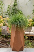 - Stylowy Design:Donica Siena charakteryzuje się eleganckim, smukłym kształtem oraz unikalnym kolorem stalowej rdzy, który nadaje jej industrialny i nowoczesny charakter. Taki wygląd sprawia, że donica doskonale wpisuje się w różnorodne aranżacje, od minimalistycznych po bardziej eklektyczne.
