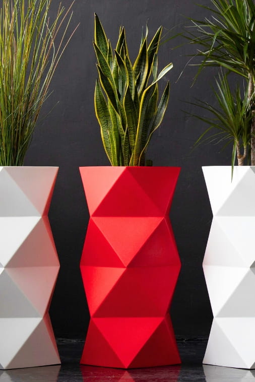 W donicy Asti wyeksponujemy duży okaz zamiokulkasa czy strzelistą sansewierię gwinejską, a powstała aranżacja będzie zwracać uwagę swoim urokiem i artyzmem. Wysokie doniczki geometryczne Asti można stosować jako donice nowoczesne na taras lub donice domowe idealne do salonu. Wytrzymałość gwarantowana zastosowaniem trwałego materiału, wykonania i precyzji wykończenia są w tym przypadku równie istotne.