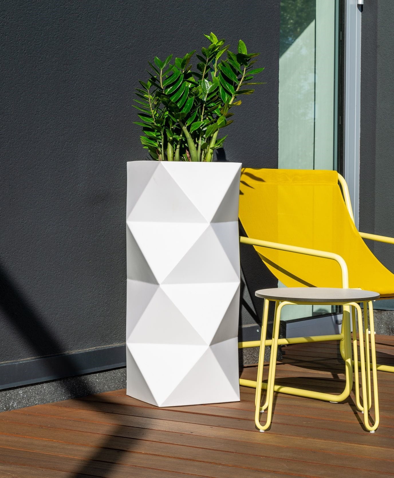W donicy Asti wyeksponujemy duży okaz zamiokulkasa czy strzelistą sansewierię gwinejską, a powstała aranżacja będzie zwracać uwagę swoim urokiem i artyzmem. Wysokie doniczki geometryczne Asti można stosować jako donice nowoczesne na taras lub donice domowe idealne do salonu. Wytrzymałość gwarantowana zastosowaniem trwałego materiału, wykonania i precyzji wykończenia są w tym przypadku równie istotne.