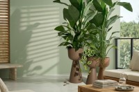 Wykończona w matowym beżu, prezentuje się ciepło i szlachetnie, subtelnie rozjaśniając wnętrze i doskonale podkreślając naturalną zieleń roślin.