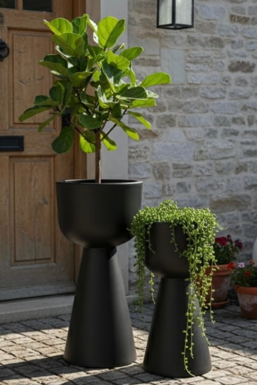Ustawiona pojedynczo stanowi elegancki akcent przy wejściu, przy przeszkleniach lub w strefie wypoczynkowej. W większej liczbie pozwala tworzyć harmonijne, symetryczne układy, które budują rytm i podkreślają architekturę wnętrza.