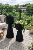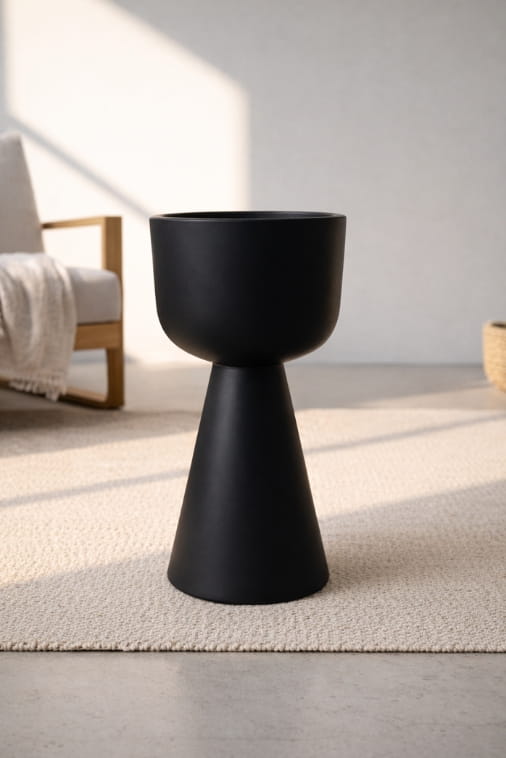 Zendo 65 to nowoczesna donica o wysokości 65 cm, która łączy dopracowany design z wyjątkową trwałością. Jej geometryczna, rzeźbiarska forma w połączeniu z głęboką czernią tworzy wyrazisty, a jednocześnie ponadczasowy akcent aranżacyjny. Doskonale eksponuje zieleń roślin i harmonijnie dopełnia wnętrza urządzone w stylu nowoczesnym, loftowym oraz minimalistycznym.