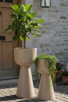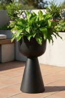 Zendo 65 to wysoka, 65-centymetrowa nowoczesna donica o wyrazistej, architektonicznej formie. Jej projekt opiera się na prostocie i precyzji – geometryczna bryła, pozbawiona zbędnych detali, przyciąga uwagę proporcjami i harmonią. Zaokrąglona misa płynnie łączy się ze stożkową podstawą, tworząc spójną, elegancką sylwetkę.