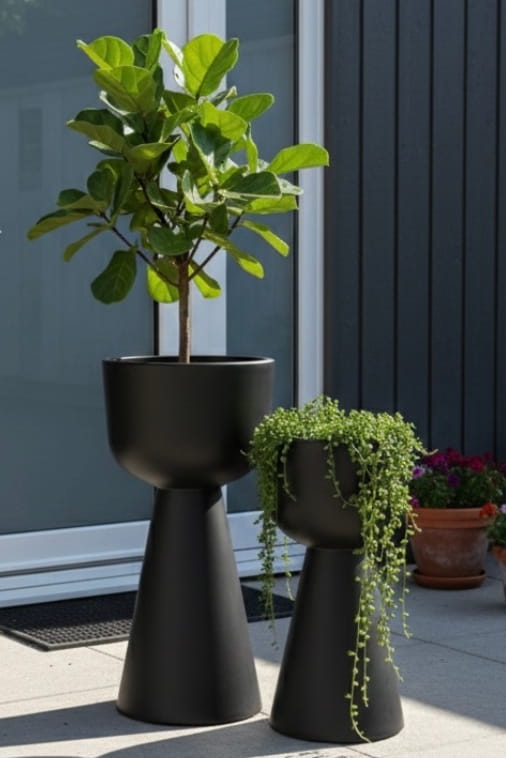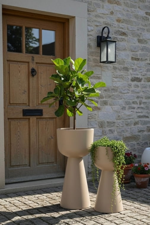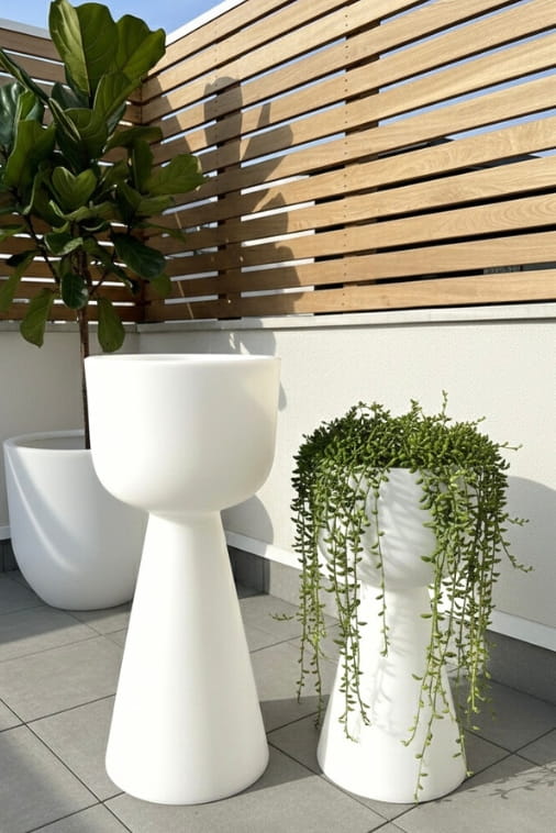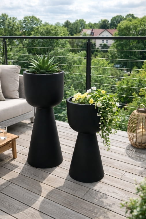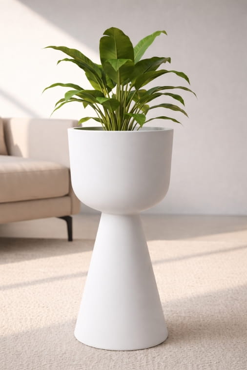 Dzięki przemyślanej wysokości elegancka donica efektownie eksponuje rośliny, nie przytłaczając wnętrza ani przestrzeni zewnętrznej. Sprawdzi się zarówno w salonie, recepcji czy biurze, jak i na tarasie, patio czy balkonie.