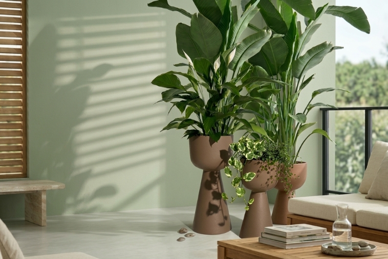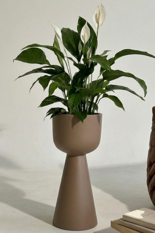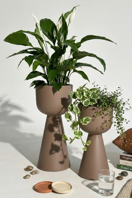 Kolor mokka nadaje donicy wyjątkowego charakteru. Ciepły, głęboki odcień inspirowany naturalnymi barwami ziemi tworzy przytulne tło dla zieleni. Rośliny stają się bardziej wyraziste, a cała aranżacja zyskuje spójność i subtelną elegancję.