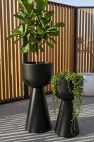 Zendo 80 to nowoczesna, elegancka donica o wysokości 80 cm, która łączy elegancki design z wyjątkową trwałością. Jej rzeźbiarska, geometryczna forma oraz głęboki, czarny kolor sprawiają, że stanowi wyrazisty, a zarazem ponadczasowy element aranżacji. Doskonale podkreśla zieleń roślin i harmonijnie wpisuje się w przestrzenie urządzone w stylu nowoczesnym, loftowym czy minimalistycznym.