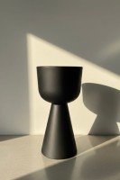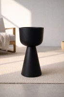 Zendo 80 to duża, designerska donica o wysokości 80 cm, która przyciąga uwagę wyrazistą, rzeźbiarską formą i dopracowanym, matowym wykończeniem w eleganckim odcieniu mokka. Jej projekt opiera się na czystej geometrii oraz harmonijnych, starannie wyważonych proporcjach – szeroka, miękko zaokrąglona misa płynnie przechodzi w stabilną, stożkową podstawę.