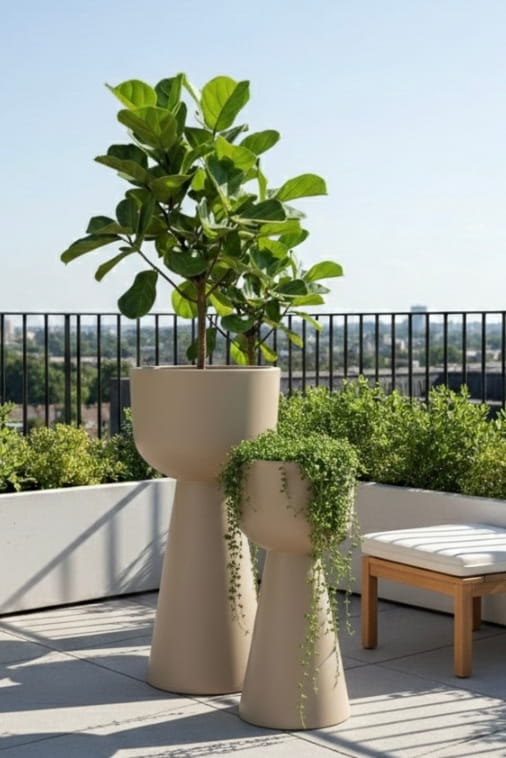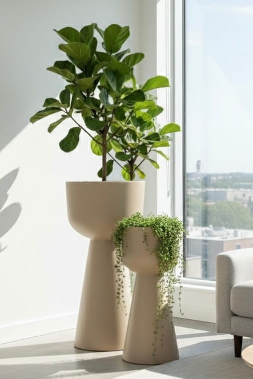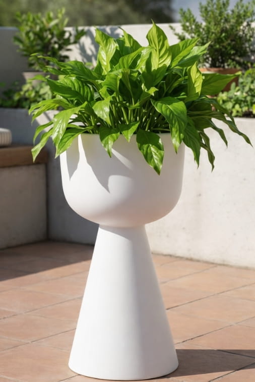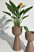 Minimalistyczna bryła doskonale podkreśla naturalne piękno roślin, eksponując ich zieleń i wprowadzając do przestrzeni świeżość oraz spokój. Odcień mokka świetnie komponuje się z wnętrzami nowoczesnymi, loftowymi i minimalistycznymi, tworząc stylowe, ciepłe tło dla roślinnych kompozycji — zarówno w domu, jak i na tarasie.