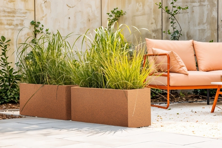 Taras to przestrzeń, która łączy wnętrze domu z ogrodem, dlatego również tutaj donice tarasowe Long Slim idealnie wpisują się w nowoczesny design. Wykorzystując efekt stalowej rdzy, donice ogrodowe wprowadzają elegancję, która pasuje do minimalistycznych, industrialnych czy skandynawskich aranżacji. Dodatkowo, dzięki swojej odporności na promieniowanie UV i mrozoodporności, donice pozostaną w doskonałym stanie przez cały rok, nawet w trudnych warunkach atmosferycznych. Na tarasie można ustawić je zarówno w grupach, tworząc kompozycje roślinne, jak i pojedynczo, aby ozdobić przestrzeń. Dzięki subtelnemu efektowi rdzewienia, donice stanowią wyjątkowy akcent wśród mebli ogrodowych, a ich prostokątny kształt doskonale komponuje się z prostymi liniami mebli tarasowych.