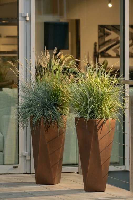 Zestaw 2 donic na taras Vaso z półką 72/59 cm w efekcie cortenu | Monumo