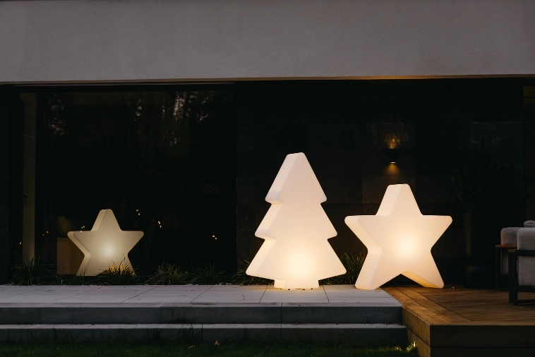 Gwiazdy Świąteczne RGB LED to nowoczesny design połączony z trwałością i funkcjonalnością. Wykonane z lekkiego, odpornego na warunki atmosferyczne polietylenu, zachowują swój elegancki wygląd przez wiele sezonów – zarówno w salonie, jak i na tarasie czy w ogrodzie.