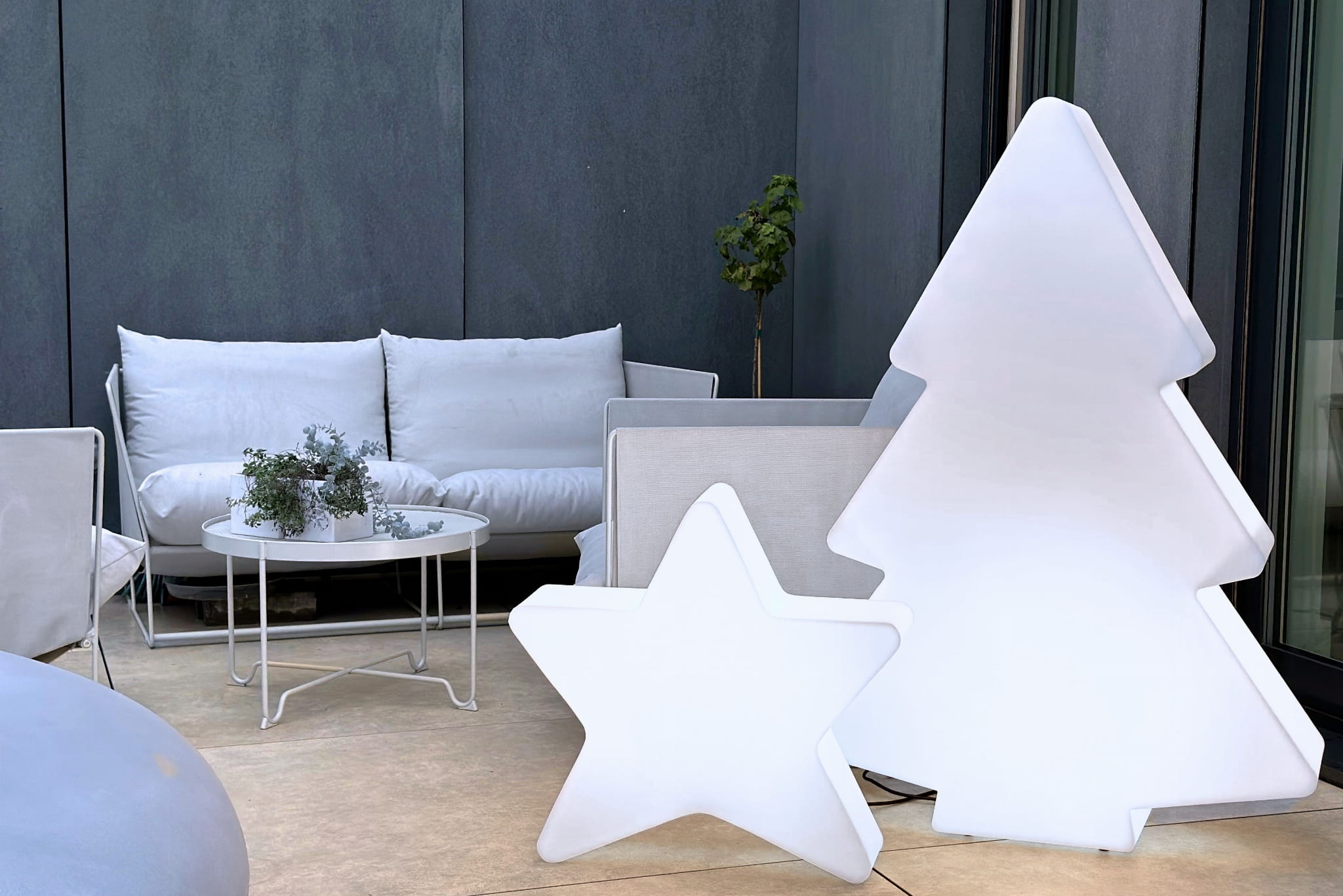Zestaw Świąteczny LED Monumo wprowadzi magiczny bożonarodzeniowy klimat w każdą przestrzeń, pięknie zdobiąc wejście do domu, biura, restauracji czy hotelu. Składający się z podświetlanej choinki (H:140) oraz dwóch gwiazd (H:50 i H:70) o neutralnej barwie, zestaw świąteczny LED idealnie nadaje się również jako dekoracja witryn sklepowych. Efektowne oświetlenie zapewni wspaniałą atmosferę, przyciągając wzrok i tworząc ciepłą, świąteczną aurę.