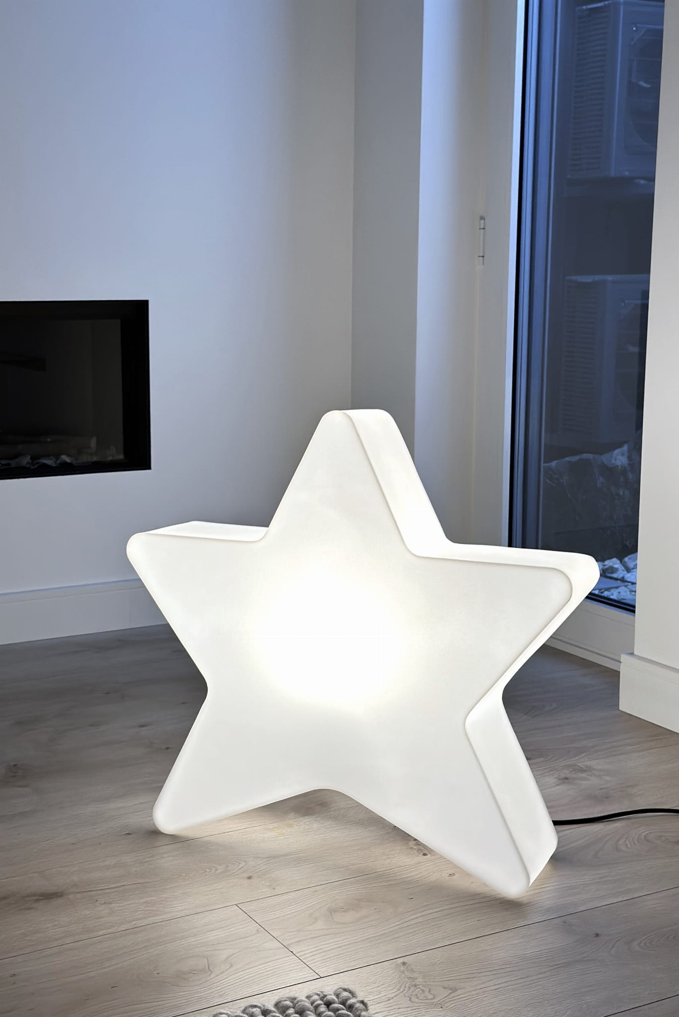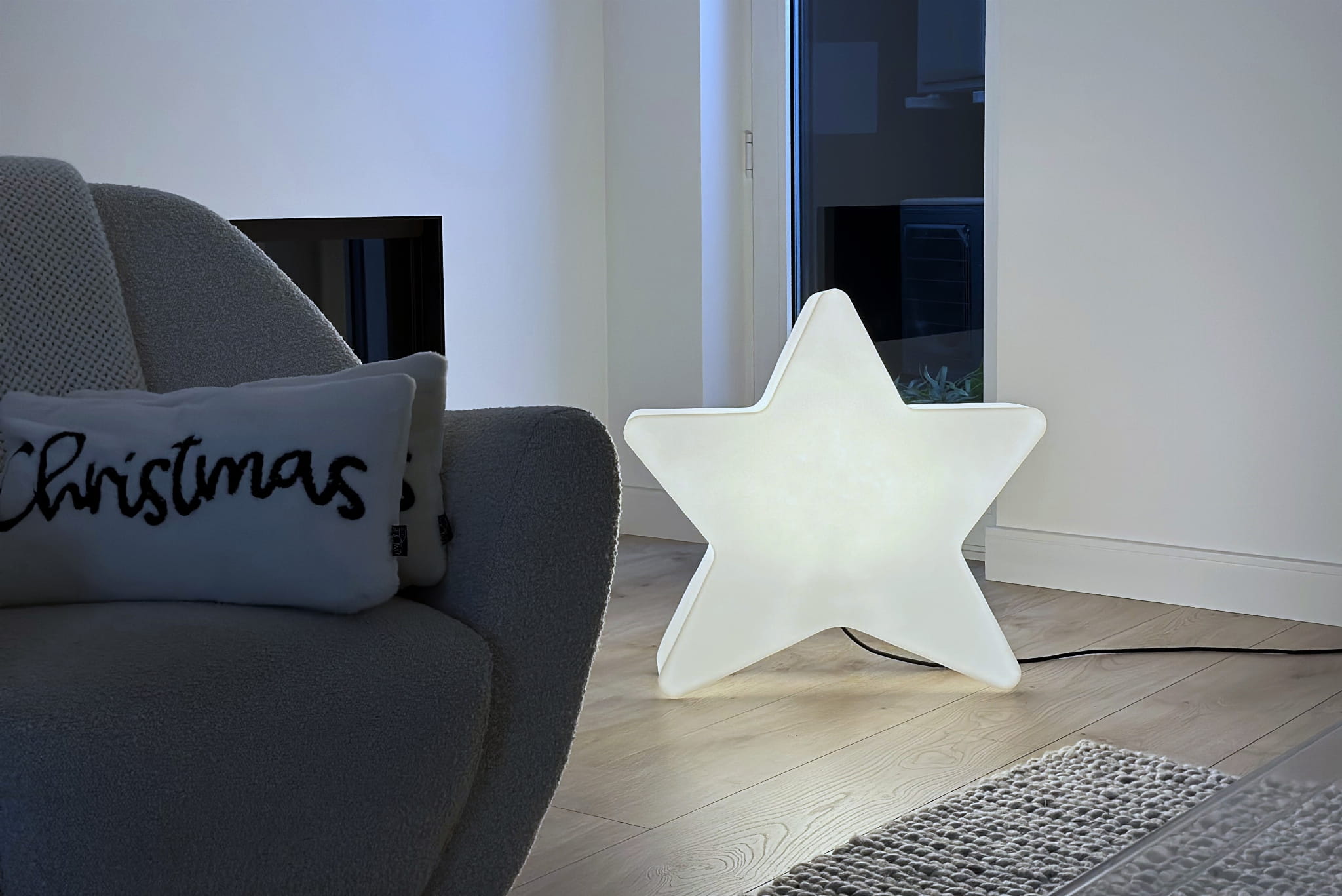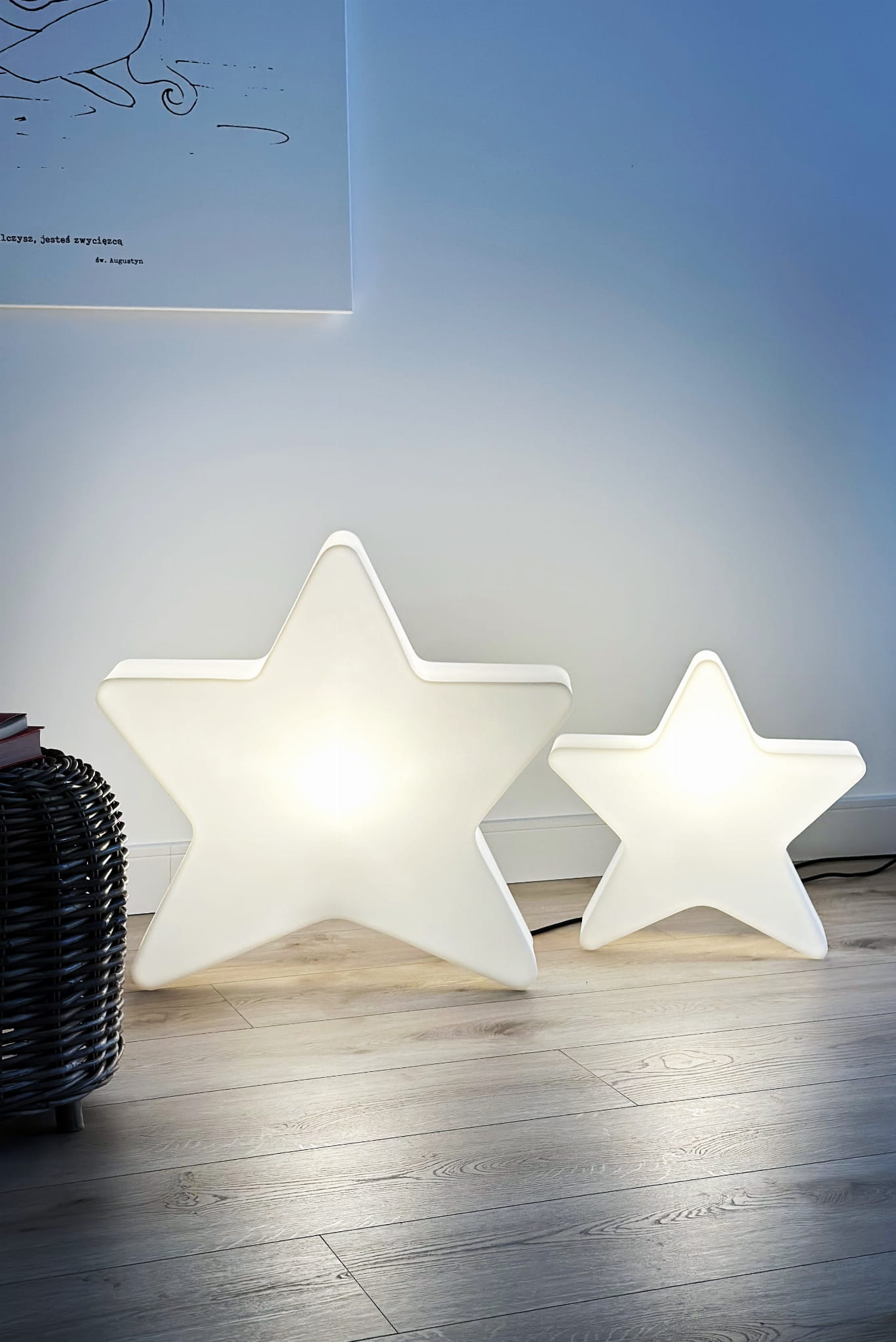 Do kompletu z elegancką choinką LED, zestaw świąteczny obejmuje dwie podświetlane gwiazdy o wysokościach 50 cm i 70 cm. Te subtelne, a zarazem wyraziste elementy, stanowią idealne uzupełnienie tradycyjnych dekoracji świątecznych. Każda z gwiazd zachowuje neutralną barwę, co sprzyja tworzeniu spójnej i estetycznej kompozycji świetlnej. Podświetlane gwiazdy są lekkie i łatwe do przenoszenia, dzięki czemu można je dowolnie aranżować, eksponując w różnych miejscach w domu, ogrodzie czy na balkonie.Neutralna barwa - harmonia światła