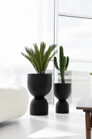 Postaw na design, który podkreśla charakter przestrzeni. Smukły kształt kielicha i głęboka antracytowa barwa tworzą duet, który przyciąga wzrok w ogrodzie, na tarasie i we wnętrzu. Trwałe, odporne na warunki atmosferyczne i lekkie – te donice to styl i funkcjonalność w najlepszym wydaniu. Stwórz efektowną, wielopoziomową kompozycję, która zachwyci przez cały rok!