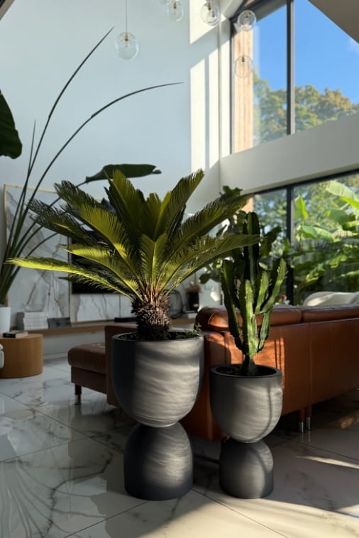 Donice są odporne na mróz, wilgoć, promienie UV i uszkodzenia mechaniczne — możesz cieszyć się ich pięknem przez cały rok, zarówno we wnętrzach, jak i na świeżym powietrzu.