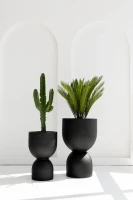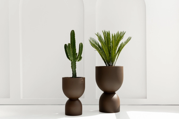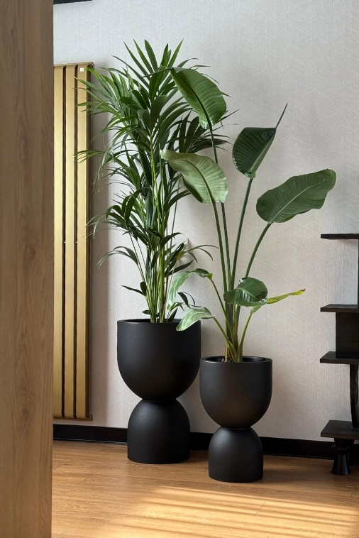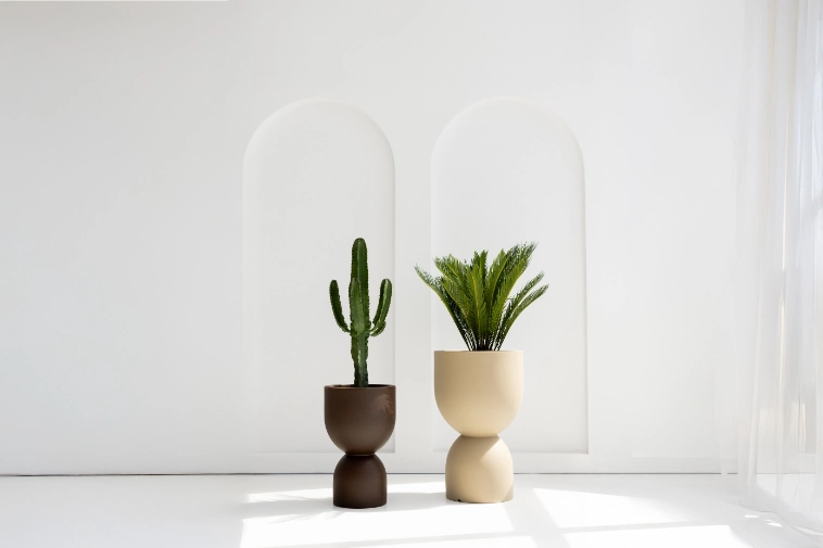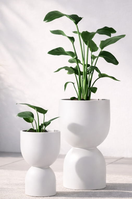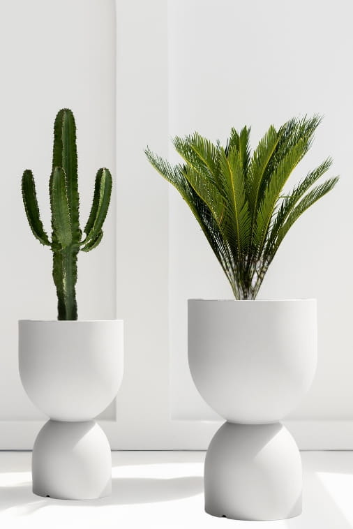 W przestrzeniach domowych donice pełnią podwójną rolę – dekorują i porządkują przestrzeń. Biały kolor nadaje lekkości i optycznie rozjaśnia wnętrza, a neutralność barwy sprawia, że idealnie komponują się z zielenią roślin oraz wieloma stylami – od skandynawskiego, przez nowoczesny, aż po boho czy japandi. To świetne uzupełnienie salonu, holu, biura czy recepcji. Doskonale prezentują się z palmami, monsterami, fikusami, strelicjami czy dracenami.