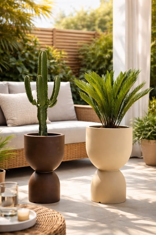 - Spójność estetyczna: idealnie dopasowane formą i kolorem donice tworzą elegancki komplet.