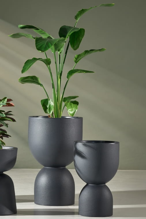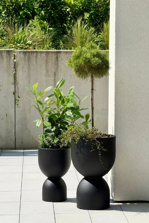 Spójność estetyczna — idealnie dopasowane formą i wykończeniem donice tworzą elegancki komplet.