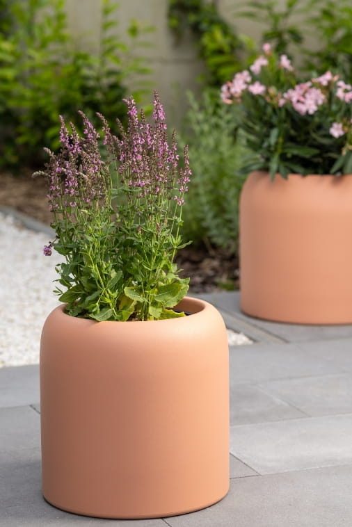 Zestaw okrągłych donic ogrodowych 39 i 46 cm brzoskwiniowych | Ambienti pełna | Monumo