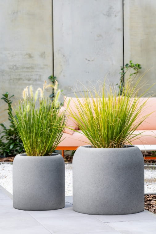 Zestaw okrągłych donic ogrodowych 39 i 46 cm w kolorze efekt kamienia | Ambienti pełna | Monumo